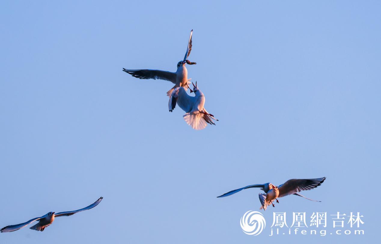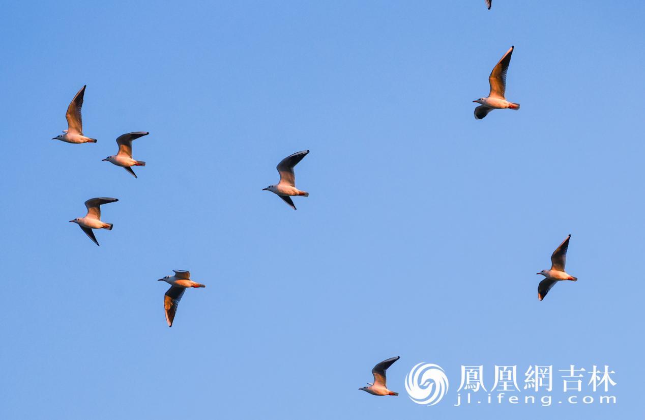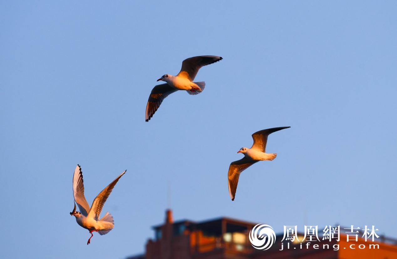 11月初冬,长春伊通河畔迎来了南迁的红嘴鸥。