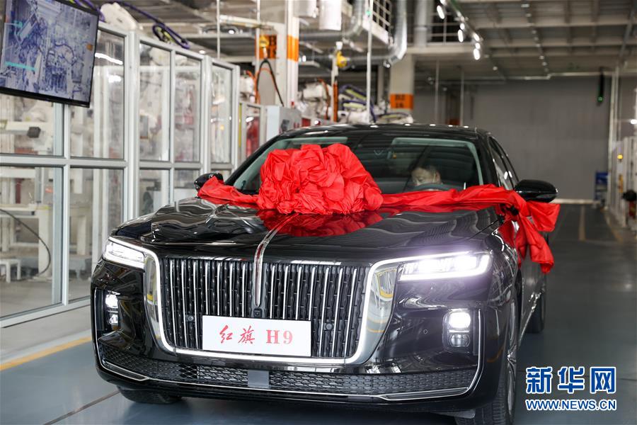这是7月9日在长春的红旗工厂新车间拍摄的红旗H9汽车。 当日,中国第一汽车集团有限公司旗下红旗工厂新车间交付暨H9量产仪式在长春举行,标志着豪华轿车红旗H9正式量产下线。 新华社发(颜麟蕴 摄)