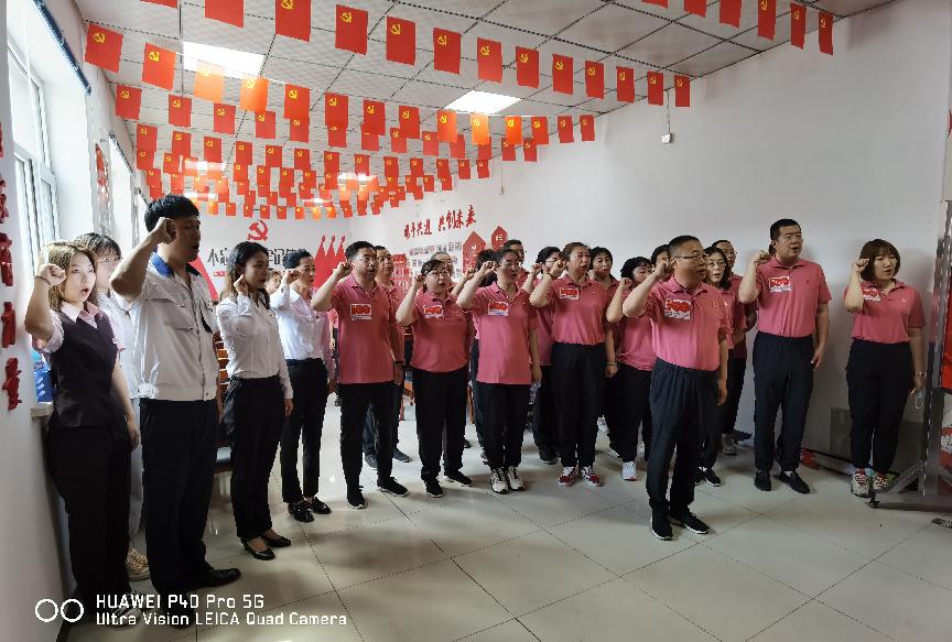 吉林中粮生化有限公司党支部书记、总经理李义,副总经理谢怡及各银行党员代表、社区相关领导、预备党员出席本次活动。首先,由吉林中粮生化总经理李义带领大家开展重温入党誓词活动。