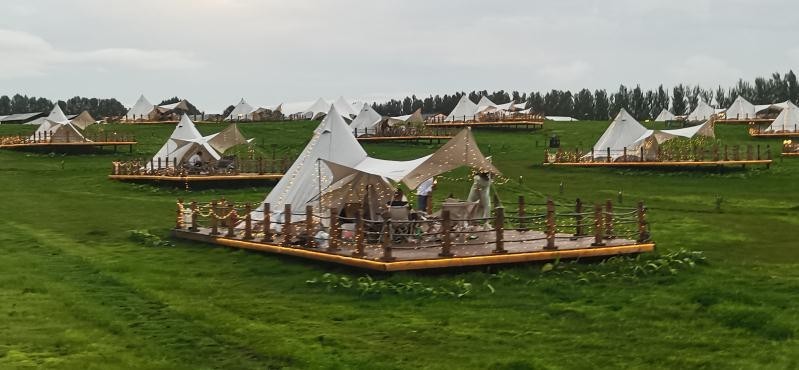 据介绍,这里有野奢帐篷、星慕帐篷等各种帐篷130余顶(幢)。在露营基地里,游客们白天可在帐篷里躲艳阳,去草地上玩飞盘、荡秋千,冲一杯浓香的咖啡,呼吸大自然新鲜空气,整个人都醉了;夜幕降临,湖畔燃起篝火,一幅幅充满诗情画意的美丽图景,在这里一一呈现。