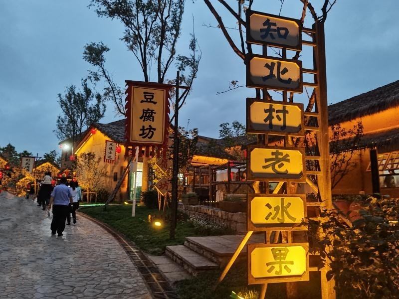 度假区内,人们惊喜地看到,知北村将70年代北方风貌与开阔的广场空间相结合,通过古今碰撞亮眼吸睛,让梅河这片土地重现曾经的原生文化。街道两旁的档口与小摊、林荫小路、粉坊、豆腐坊、酿酒坊、煎饼屋、冰果屋等“东北十坊”特色传统作坊,更是营造了浓厚的东北艺术田园氛围。