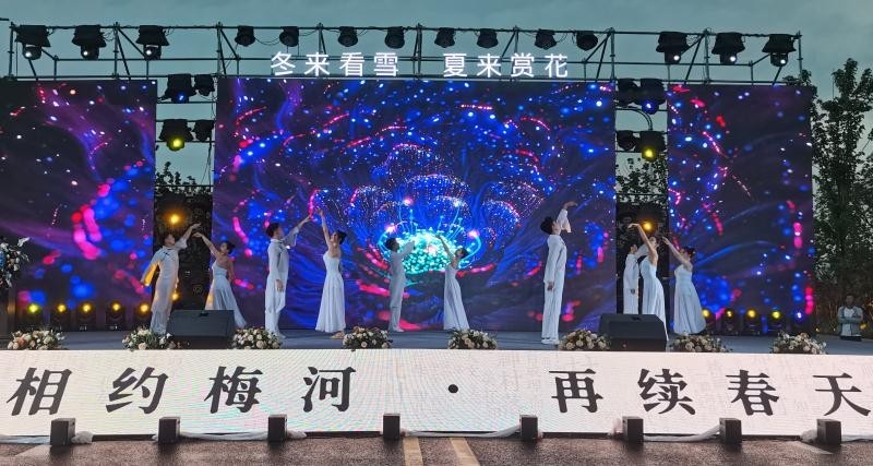 随后,走进知北村艺术田园生活度假区,景区联袂开放在开场舞《繁花盛开》中拉开序幕。此时,一束束璀璨的烟花腾空而起,点亮夜空。