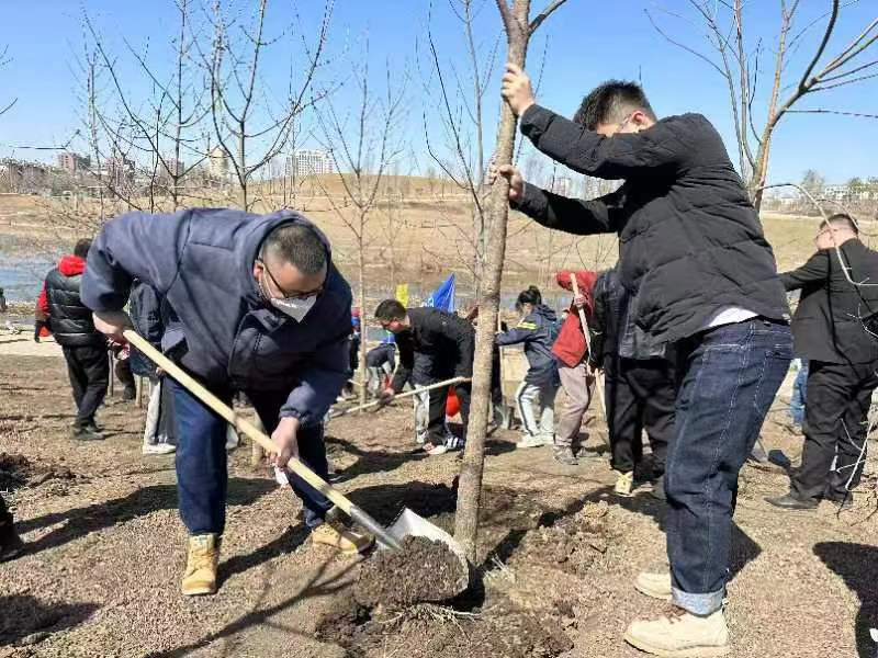 活动现场,园艺师为大家详细讲解植树注意事项后,在技术人员指导下,大家撸起袖子,三五人一组,扛苗放苗、挥锹铲土、扶树正苗、浇水培土等各个环节都认真对待,配合默契,铆足干劲合力栽下一棵棵树苗。大家纷纷表示,要牢固树立绿水青山就是金山银山理念,积极倡导爱绿、植绿、护绿的良好风尚,努力为绿美吉林建设贡献青春力量。