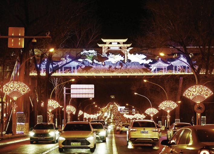 近日,延安大街欧亚新生活购物广场的过街天桥被装扮一新。夜幕降临,天桥上彩灯亮起,“魅力朝阳”的龙门造型色彩变换,南湖四亭桥和大鲤鱼也用彩灯的形式呈现,栩栩如生,成为冬日长春的一道美丽风景。