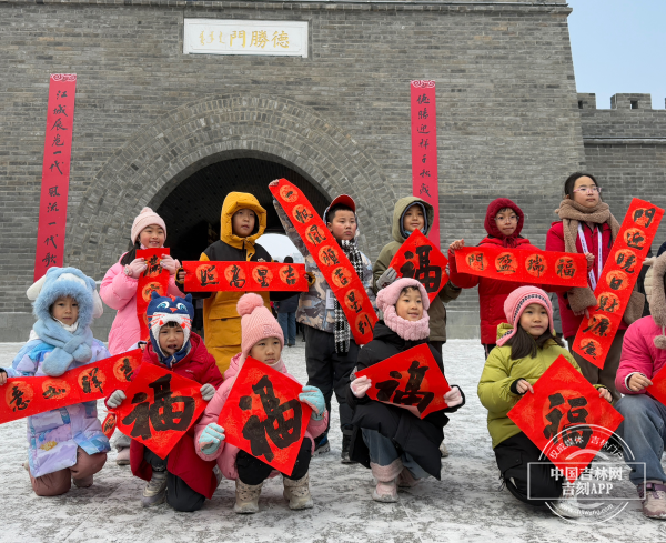 记者在现场看到,随着大红的帷幔徐徐落下,四幅寓意美好的楹联呈现在人们眼前,分别悬挂在德胜门、朝阳门城门内外两侧。据吉林市楹联协会主席赵文明向记者介绍,本次活动中的四副楹联均从“联墨迎春”吉林市2025春联征集活动中选出。德胜门两幅楹联分别为“德胜迎祥,千秋岁月千秋锦;江城展卷,一代风流一代歌”“风雨助征帆,船厂新舰重启碇;江山留胜迹,大东复兴再图强”;朝阳门两幅楹联分别为“山水绽丰姿,欣看古城迎盛世;雾凇披异彩,喜逢妙境著华章”“长白雪拥长白山,千山瑞景;朝阳门启朝阳路,一路繁花”。古朴的青灰色城门搭配喜庆的大红色春联,洋溢着浓浓的节日气息。本次活动作为吉林市文明实践活动的重要内容之一,现场舞狮跃动、乐曲欢奏,热闹的氛围吸引众多市民游客驻足观赏。