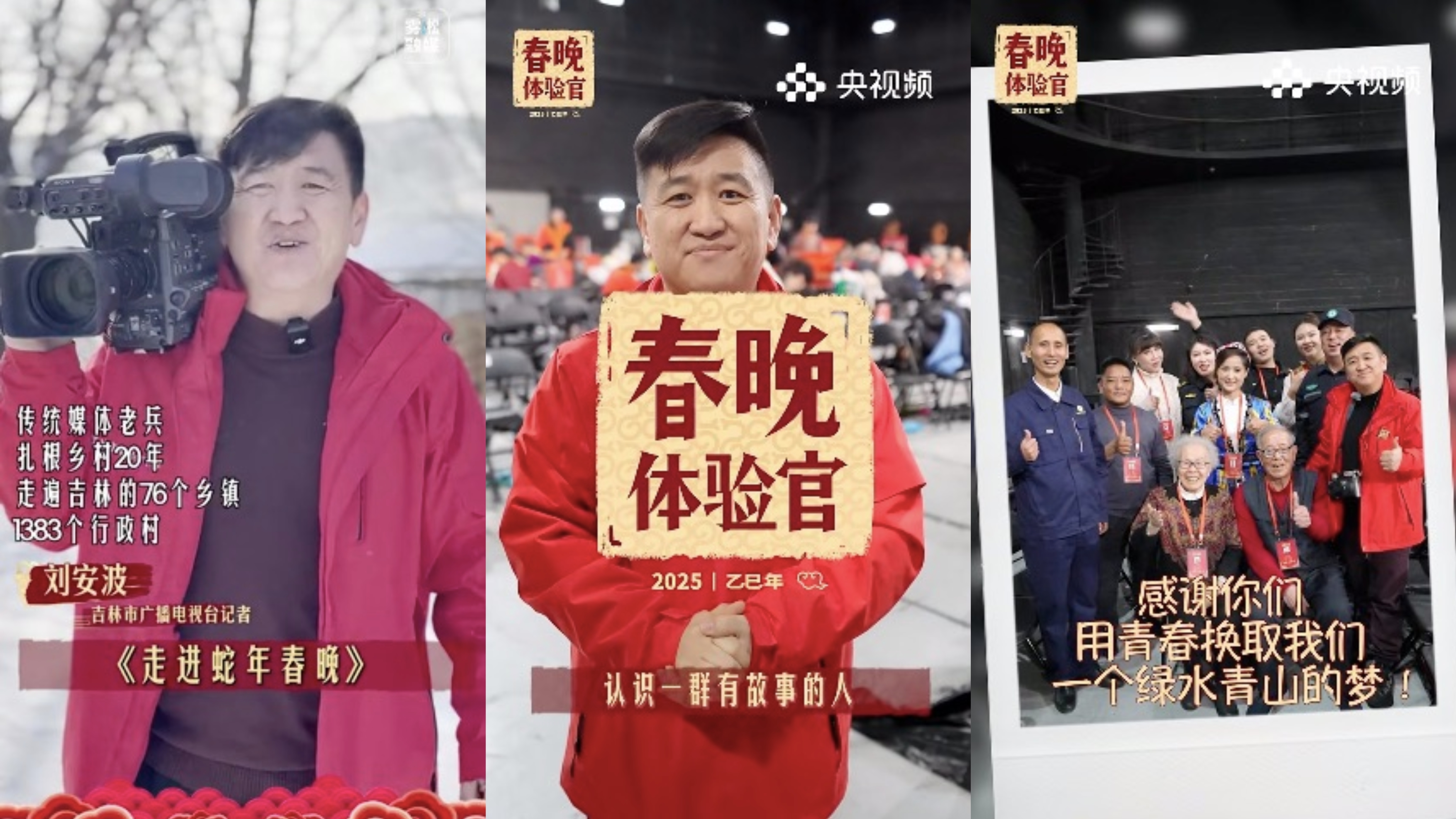 吉林市融媒体中心、《走进乡村》节目记者刘安波就成为一名“春晚体验官”:“这次的经历不同于以往我的报道任务,让我有幸与来自生态环境保护领域的优秀代表,共度了两天的宝贵时光。”作为农村节目的资深记者,刘安波带着深厚的乡土情怀走进春晚舞台,用镜头记录下春晚彩排中的感人瞬间,带领广大观众更贴近农民观众的心声,成为展现乡村与春晚的独特纽带。