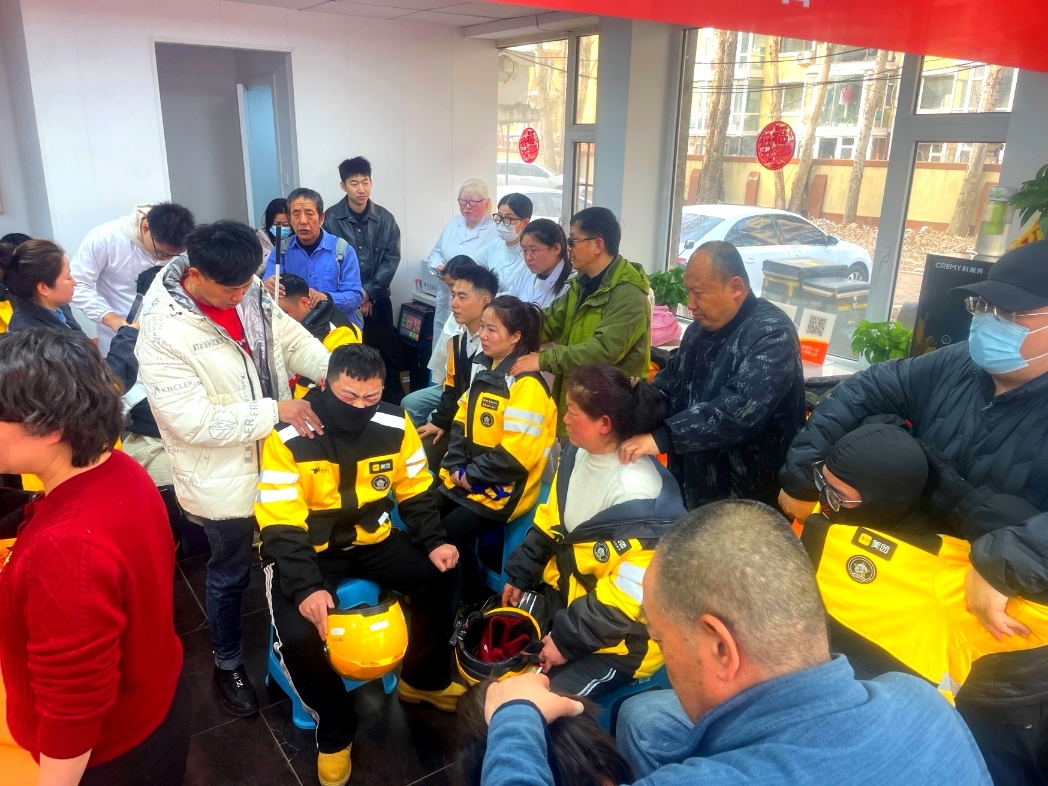 快递骑手小李感慨地说:“我们每天都在外面跑,身体特别累,今天体验了盲人按摩,感觉浑身都轻松了,真的很感谢他们。”