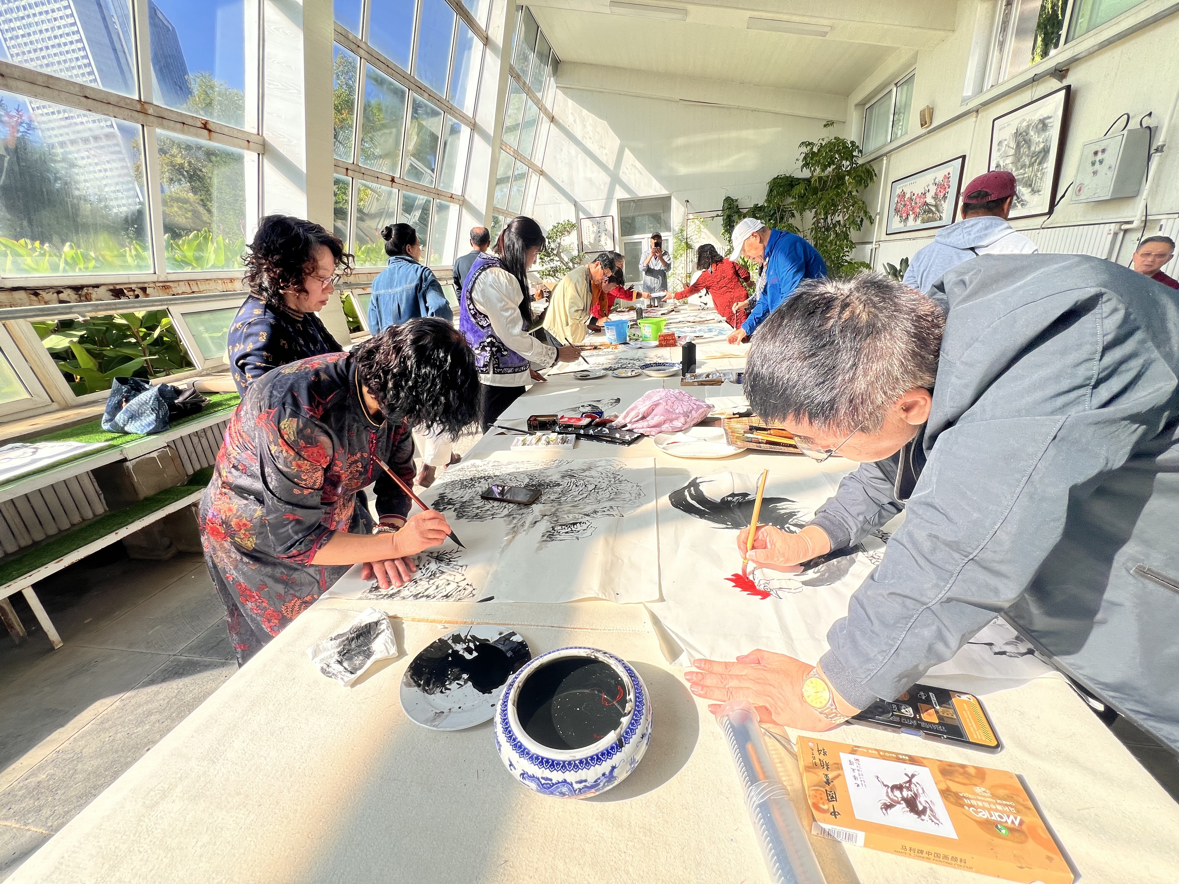 开展当日,漱芳园内热闹非凡,笔墨飘香、菊韵盈园、瑰宝纷呈、好物荟萃,一场融合文化深度与生活气息的盛宴在此上演。东北师范大学生命科学学院的学生们来到这里,开展以菊花生长周期为主题的研学活动,在实践中探索植物奥秘;吉林省生态环保志愿者协会志愿服务中心志愿者队也在此开展文化交流活动,传递环保与文化理念;此外,活动还特别邀请了部分学龄前儿童及40余个社区艺术团前往漱芳园进行艺术交流,为现场增添了活力与童趣。