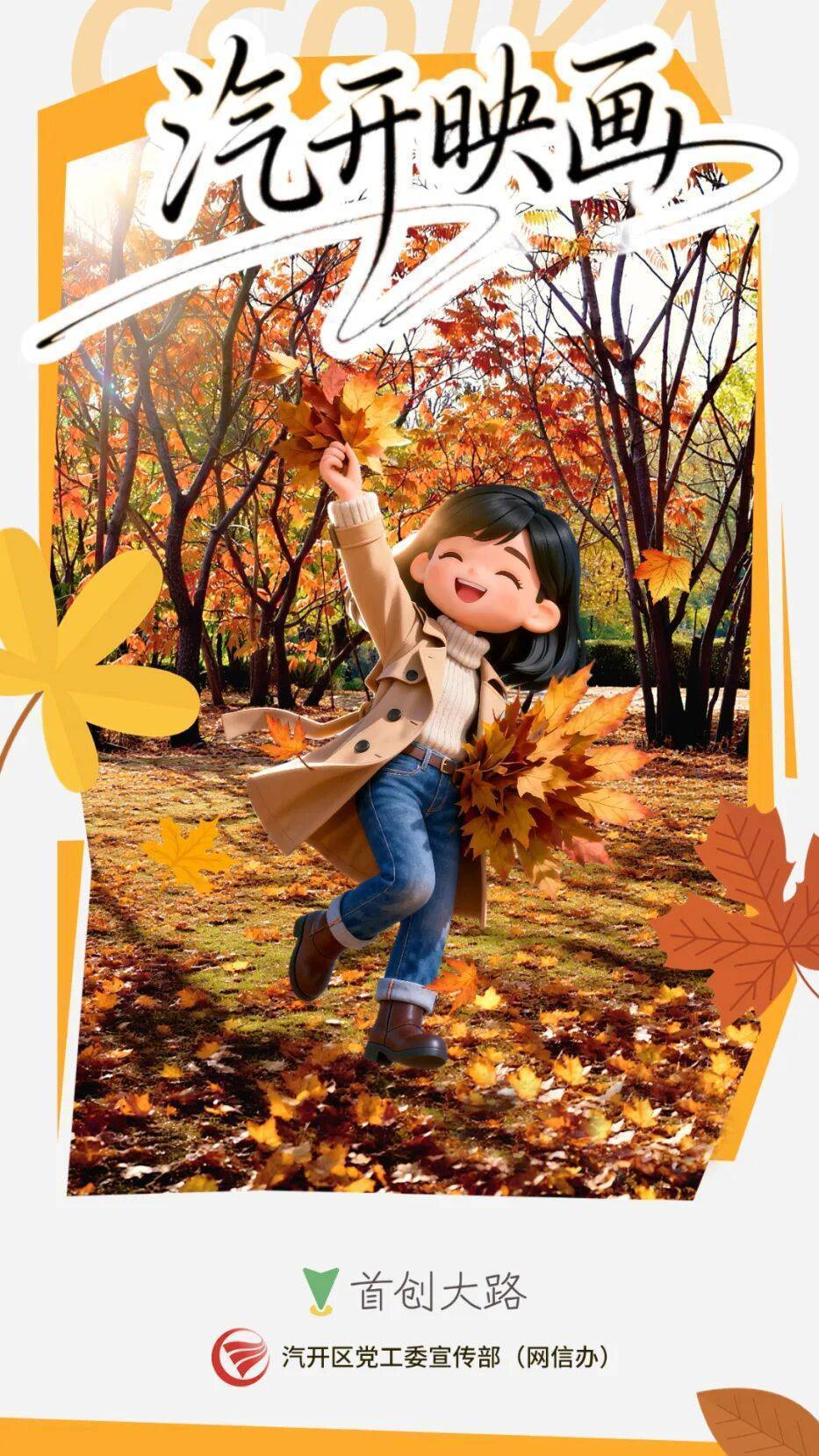 秋天的风从车窗溜进来,阳光照耀着汽开区的每一个角落。秋意正浓,寓意“汽开”和“秋天”的秋日专属AI人物“小Q”闪亮登场,让我们跟着“小Q”穿过汽开区的街头巷尾,寻找秋景的打卡机位,聆听车轮碾过碎叶的沙沙响,把四季的第三个章节,写进飘落的枫叶里~