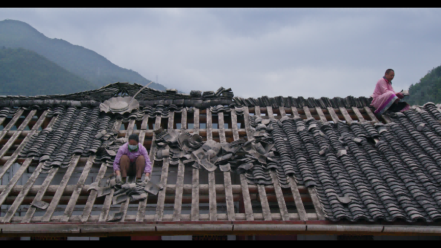 例如:大姐在2020年拆除烟囱时,画面切回1999年她安装烟囱的场景;三姐对着手机化妆的镜头,与1999年她用铅笔描眉的画面交织;二姐在废墟中捡起印有自己年轻时照片的广告牌,背后是1999年她背着南瓜走过的身影。