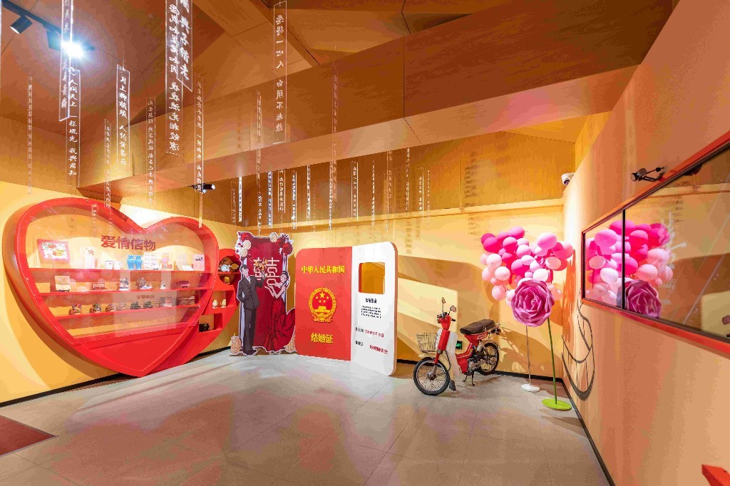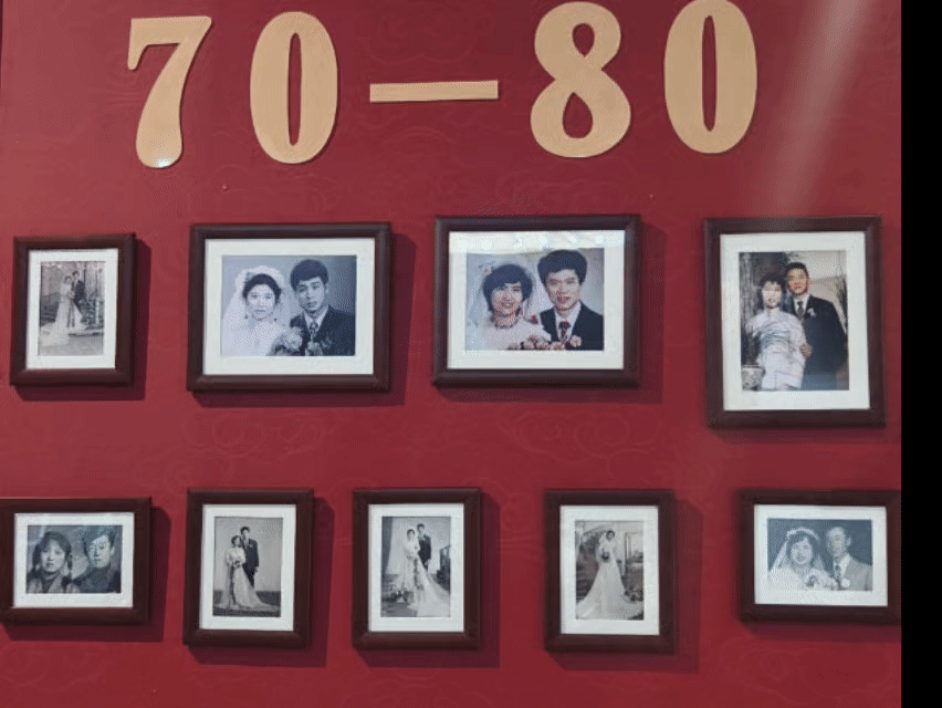 展厅墙上挂着的不同年代结婚照,从民国时期的西装婚纱合影,到80年代的红背景登记照,每一张笑脸都带着时代的印记,轻易就勾起心底最深的回忆。