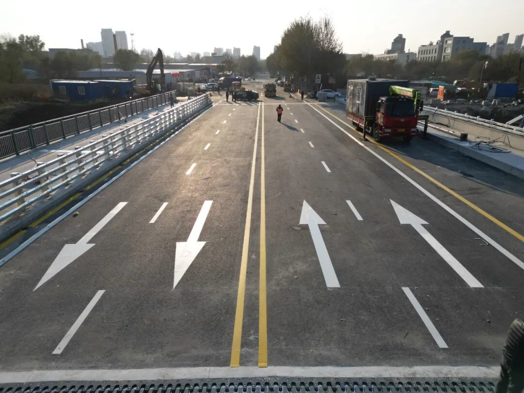 旧桥建成时间为1999年,设计荷载等级为城-B,随着城市发展,经过该桥的车辆数量和重量大幅增加,旧桥从通行能力和承重方面已不能满足要求。新建桥梁采用城-A荷载标准,优化了线形与交叉口组织,增强了交通运行的可靠性,分流东部快速路与北部快速路车辆,提升区域的交通便利性。