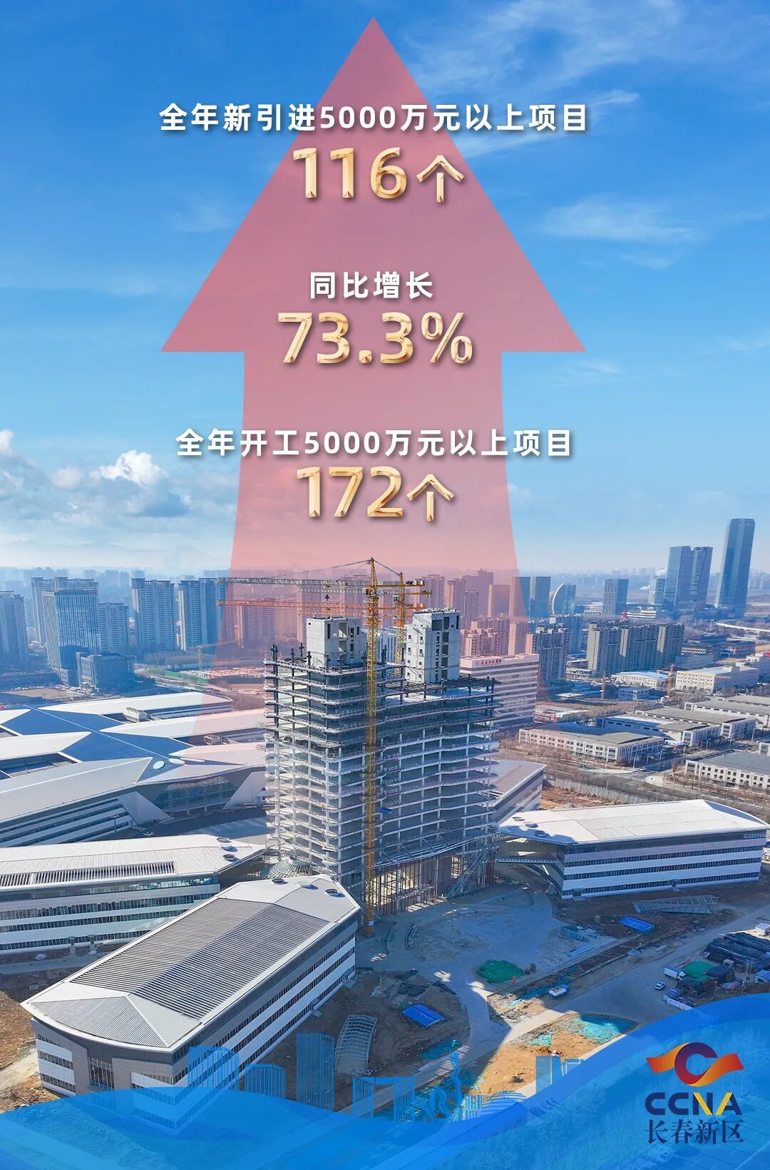 这一年,项目建设的热潮持续涌动。长春新区持续践行“新年第一会”理念,坚持项目建设是经济建设的主战场,招商引资是项目建设的第一抓手。“四个一批”抓项目、扩投资,新引进5000万元以上项目116个,增长73.3%;全年开工5000万元以上项目172个,超额完成170个的年度目标。
